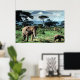 Featuring a breath taking view of a Herd of Elephantsin a field.this is a beautiful photo on this poster