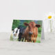 Here is a nice close up photograph of three young cows on a farmer's pasture, shot from ground level looking up, directly infront of them! One is a black angus heifer calf, one red angus steer, and a black and white holstein dairy steer. Get well message inside, but text can easily be changed to suit any occasion.
