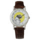 I like the illustrative watch with the lady on it. It is a great reminder that I am blessed and it has a very sturdy leather band. The colors are true and vibrant. Love the color of the Leather also. Very nice.