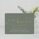 Here comes the bride, gold foil bridal shower invitation. Green and gold foil. 5x7 Bridal Shower invitation.