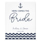 here comes the bride wedding sign navy blue