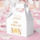 This cute sunshine-themed baby shower favour box features a watercolor illustration of a smiling yellow sun and "Here comes the Son" in stylish retro typography. Perfect for a boy's baby shower.