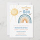 Welcome your little ray of sunshine with our "Here Comes the Son" Baby Shower Invite! This delightful boho-inspired design features a radiant yellow sun, soft pastel rainbow, and whimsical flying birds, all in earthy tones that evoke warmth and joy. Spread the sunshine and invite your loved ones with this charming baby shower invitation! BBS399