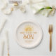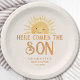 This sun-themed baby shower paper napkin is decorated with a watercolor smiling sun and stylish typography on a soft cream background.
