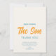 Thank family and friends for their baby shower gifts with this cute sunshine boys' baby shower thank you card. It features the text "Here Comes The Son" in stylish typography with a brightly coloured watercolor sun on a soft cream background. The back is decorated with a sun pattern. Easily customisable. Original Watercolor © Michele Davies.