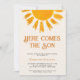It features the text "Here Comes The Son" in retro typography with a yellow watercolor sun on a soft cream background.