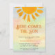 It features the text "Here Comes The Son" in retro typography with a yellow sun on a colourful watercolor background.
