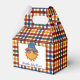 Celebrate moms-to-be with these fun baby boy Here Comes the Sun themed shower supplies. These party favour boxes have a fun illustration of a cartoon sun wearing sunglasses and a bucket hat in yellow, orange, red and blue along with a coordinating plaid pattern.