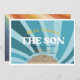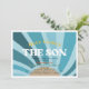 This retro and groovy "Here comes the son" boy baby shower invitation features the sun in blue shades with retro lettering. The reverse side features a rainbow colour background. Personalise for your needs. You can find more matching products at my store.