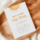 This "Here comes the son" baby shower invitation combines boho charm with a retro flair, making it an ideal choice for your sunshine-themed baby shower. Celebrate in style and make your special day memorable with this delightful invitation.