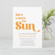 Invite family and friends to your sun-themed baby shower with this cute sunshine baby shower invitation. It features the text "Here Comes The Sun" in stylish typography with a brightly coloured watercolor sun. Perfect for a gender-neutral baby shower. The back is decorated with a sun. Easily customisable. Original Watercolor © Michele Davies.