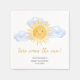 These sun-themed baby shower napkins feature a cute yellow smiling sun, blue clouds, and "here comes the sun!" in stylish script typography.