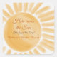 Watercolor painted Sun in Sunshine yellow, orange colours themed bridal shower decor Square Sticker with text " here comes the sun she found the one!" you can personalise to your needs. Perfect for a summer or fall bridal shower selebration. Matching items you can find in collection from my store PatternDigitPics.