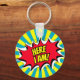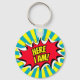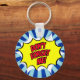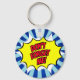This comic-style design with a colourful pop bubble and the text "Here I am!" and "Don't forget me!" on a key ring is a great way to make keys more visible.