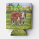 Hereford Cow & Cute Calf in Summer Pasture Can Cooler