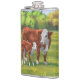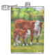 Hereford Cow & Cute Calf in Summer Pasture Hip Flask