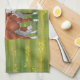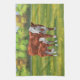 Hereford Cow & Cute Calf in Summer Pasture Tea Towel