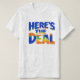 Seal the conversation with this confident tee featuring "Here's the Deal" in bold, modern font. Inspired by the iconic phrase popularised by TV's How I Met Your Mother and entrepreneur Gary Vaynerchuk, this design combines striking colours - deep blacks, crisp whites, and electric blues - against a comfortable background. Perfect for fans of HIMYM, entrepreneurs, and anyone who means business.