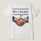image showing two real-looking hands shaking each other. The hands are wearing watches. There is a speech bubble above the hands with the text "Here's the Deal."