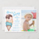 Here's the Scoop boys ice cream photo birthday invitation for a blue summer kids birthday party.