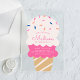 Serve up some fun with these cute ice cream birthday party invites! The invites feature a delightful illustration of a double-scoop ice cream cone with colourful pink, blue, and orange sprinkles, set against a frosted or transparent acrylic background. Personalise the ice cream-themed birthday invitations with the birthday girl's name and age in playful pink lettering, and add the rest of your party details below. These sweet invites are perfect for an ice cream-themed birthday party!