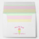 Here's the scoop: Summer ice cream birthday party envelope pink, mint and light yellow ice cream cone and pastel striped background