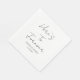 White elegant and clean wedding napkins with the quote "here's to forever" in script calligraphy, the couple's names, and the date. All text is editable and can be personalised with a psalm, poem, or any message you'd like to add for this special occasion.