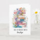 Personalised encouragement card for a new chapter, a new job, moving away and more. The front features a stack of beautiful watercolor books with flowers and a cup of coffee on top. You can easily personalise the front of this new chapter card with her name if wanted. A unique card for coworker, friend, colleague, etc.