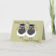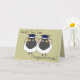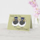 Greeting Card showing two adorable sheep in graduation caps. Caption on the greeting card reads, "Here's Two Ewe Congratulations!". Background is displayed as a khaki colour, but it and the font and phrase can easily be customised to whatever you'd like.