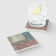 The coasters are gorgeous, a quality feel and heavy weight. They look like a precious archeological find. A rustic stone juxtaposed with a modern floral black and white print. I like the way the print goes slightly imperfect on the cut stone edges giving them a kind-of natural beauty.