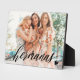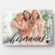 Hermanas Spanish Sisters Photo Plaque. Design features typography script ''Hermanas'' in trendy black lettering and a photo. Perfect gift for sisters.