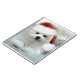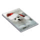 This product features Hermes, a sweet little Maltese Puppy Dog. He is wearing a Santa Hat looking out through a frosty window on Christmas morning.