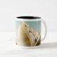 Hermit crab looking at larger shell Two-Tone coffee mug