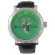 The Hero Nation Wrist Watch with African shield and spear artwork Men's Vintage Black Leather Strap Watch. The Men's Vintage Leather Watch is a big-faced timepiece that will never go out of style. Featuring a three-hand quartz movement and genuine leather strap, this watch’s classic look is great for both formal and fun occasions. Customise the face with your name and make a watch perfectly matched to your African decor style. The watch has an alloy face, and leather strap, and measures 1.45 inches in diameter, the strap measures 9.25 inches x 0.86 inches. Japan Quartz® with buckle closure. Is Water Resistance: Up to 3 ATM (98.4 ft) and comes with a 1-year manufacturer limited warranty, battery included.