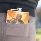 The flask itself is fine. It’s a cheap flask, obviously bought in bulk, however am prepared to overlook that. Given that it is a personalized item, I would have liked to have seen gift boxing instead of the generic packaging. Terrible printing, and/or quality. It’s a cheap, tacky vinyl. It is not cut straight and is also applied in a way that it is overhanging the bottom, causing the glue to catch on items and it will eventually roll and tear, damaging the wrap.