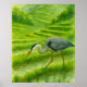 Immerse yourself in the tranquil beauty of spring with this watercolor-style poster featuring a great heron poised in a traditional rice paddy. Set against the backdrop of tiered mountain farmland, this artwork evokes the serenity of rural landscapes and the quiet elegance of nature in motion. Rich greens dominate the scene, capturing the lush vibrancy of springtime renewal.