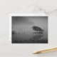 This post card features a sketch-edited black and white photo of a Great Blue Heron, fishing in a pond in early morning mist.
