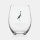 heron silhouette teal wedding guests stemless wine glass