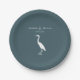 heron silhouette white on dark teal blue simple paper plate