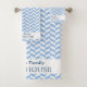 Herringbone Blue White Beach House | Custom Name Bath Towel Set