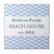 This pretty, personalised beach house ceramic tile design has a lightly textured blue-and-white herringbone pattern. Easily add your personal details to the templates. You can even change "beach house" to "summer home," "lake house" or any other wording you'd like. This modern, elegant design will be perfect to match your coastal / ocean / nautical theme home decor.