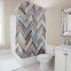 Herringbone Pattern in Blue Brown Grey Shower Curtain