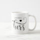 This elegant mug says "hers" in swirly modern black calligraphy, with a matching heart and a space for her first name. A matching "his" mug is available in this shop also.