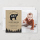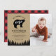 Celebrate your son's first birthday with our Wild One first birthday party invites! This cute birthday party design features a bear silhouette with "one" in a rustic script font. Your custom party details appear below in modern typography against a faux kraft paper background. At the bottom of the invitation there is a pine tree forest silhouette. On the right side of the invitation, there is your custom photo. The reverse side of the invites feature a red and black buffalo plaid design. Personalise the first birthday party invites by adding your son's name, photo, and party details.