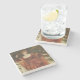 The coasters are gorgeous, a quality feel and heavy weight. They look like a precious archeological find. A rustic stone juxtaposed with a modern floral black and white print. I like the way the print goes slightly imperfect on the cut stone edges giving them a kind-of natural beauty.