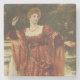 This design features a painting by the English Victorian artist Frank Dicksee (1853–1928). It shows Hesperia, one of the nymphs in ancient Greek mythology, who were goddesses of evening and the golden light of sunsets. In the myth, Hesperia guards golden apples growing from a special tree. Hesperia is depicted here as a beautiful woman wearing a long contemporary red dress. She is standing in an elegant guardian. The original artwork was painted by Frank Dicksee in 1887.