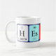 Heston spelled out as H Es T O N (Hydrogen Einsteinium Tritium Oxygen Nitrogen) on a mug for the scientist in you.