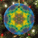 Hex Mandala Yellow Blue and Pink Ceramic Ornament