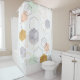 Hex Scatter I by Gabrielle McClure. Hexagons of various shapes and designs scattered across a white background.