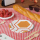 Hexagon abstract geometrical pattern in orange and paper plate